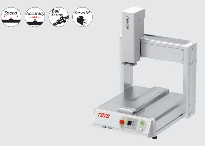 TOYOYABO.COM-鸭脖JTLSeries特色功能:1.线性马达驱动搭载螺杆式的结构;2.最多可设定100组程序,共10万点;3.软件界面操作很直观且功能完整(支援三种语言:中、日、英);4.I/O接点共16IN/16OUT,且都可自定义;5.